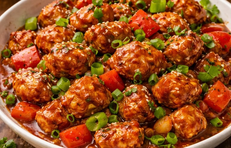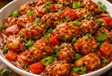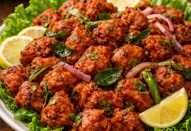 Crispy chicken coated in a glossy Indo-Chinese sauce.