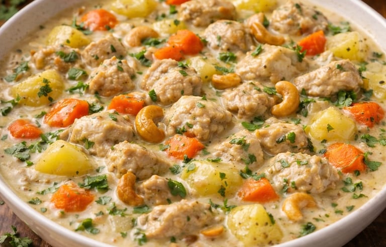 Small chicken pieces cooked in a creamy coconut stew.
